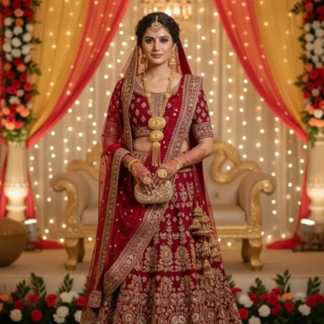 This is a wide-band choker, engineered to sit flawlessly on the collarbone, providing a rich, high-coverage look synonymous with bridal and festive wear.