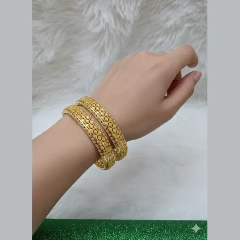 Exquisite Dual-Tone Diamond-Cut Bangles Design 6 (Set of 2)