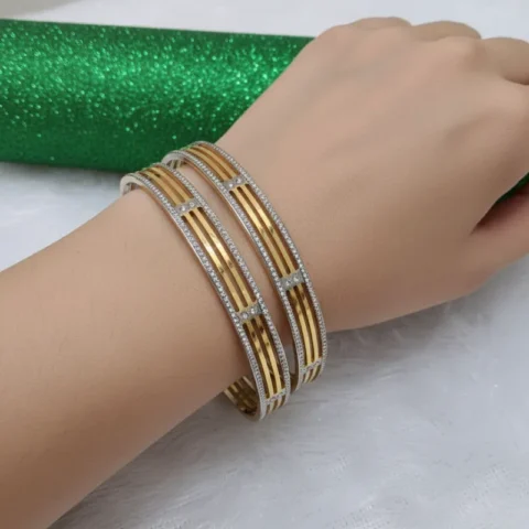 Exquisite Dual-Tone Diamond-Cut Bangles Design 4 (Set of 2)