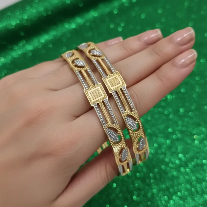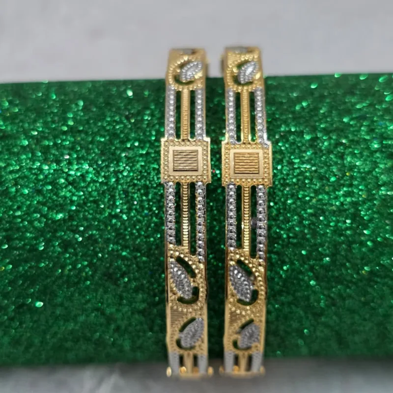 Elevate your ensemble with this stunning pair of premium dual-tone bangles. Designed for the modern woman who appreciates classic elegance with a contemporary edge, these bangles are a luxurious addition to any jewelry collection.