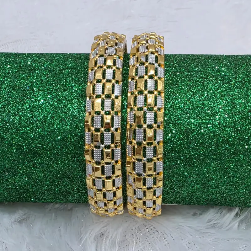 Elevate your ensemble with this stunning pair of premium dual-tone bangles. Designed for the modern woman who appreciates classic elegance with a contemporary edge, these bangles are a luxurious addition to any jewelry collection.