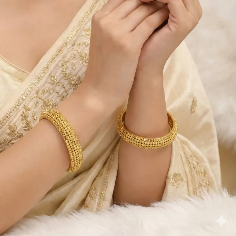 Superior Finish: Crafted with a high-quality gold plating, these bangles boast a rich, brilliant luster that mirrors the beauty of pure gold.