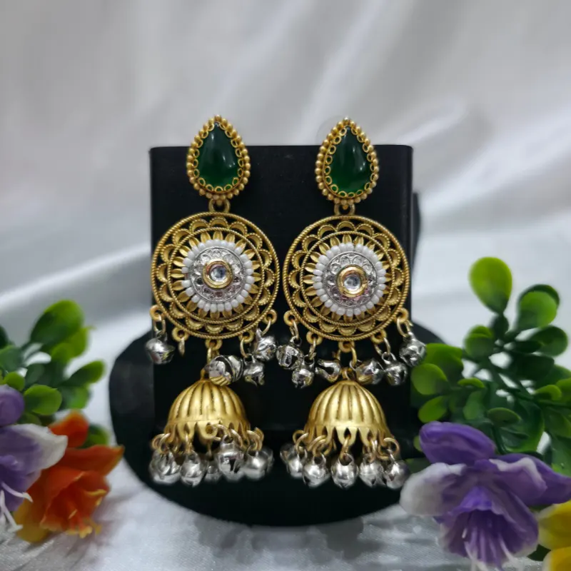 Classic Jhumka Silhouette: The delicate bell-shaped jhumka drop adds a traditional touch, swinging gracefully with your movements.