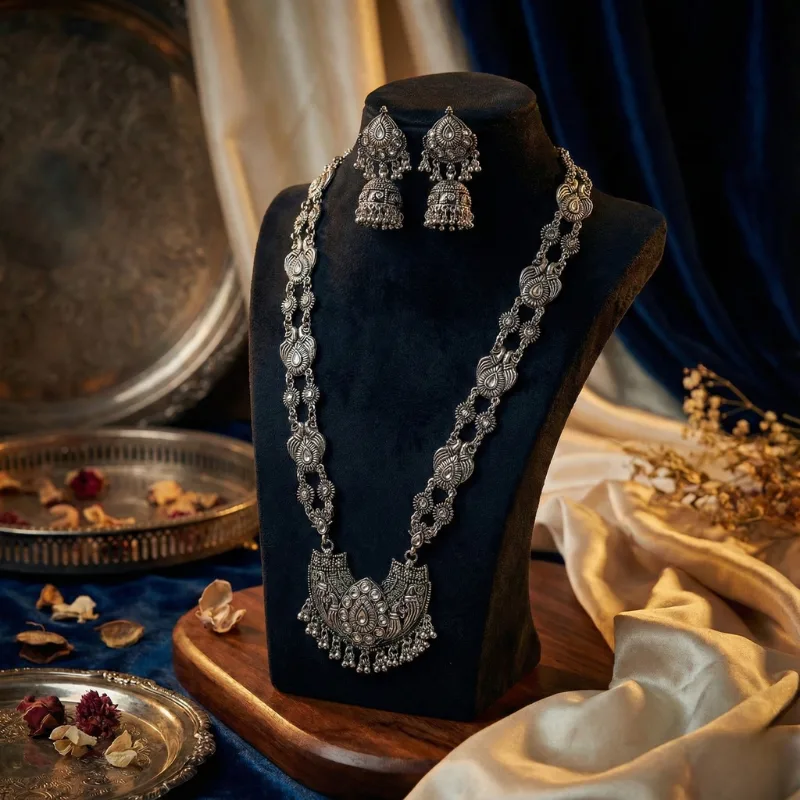 Exquisite Oxidised Silver-Plated Temple Jewellery Set