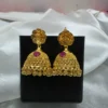 Adorn yourself with the timeless elegance of these stunning premium gold jhumka earrings. A true testament to traditional craftsmanship, these earrings are designed to elevate any ensemble, making them perfect for weddings, festivals, or special occasions.