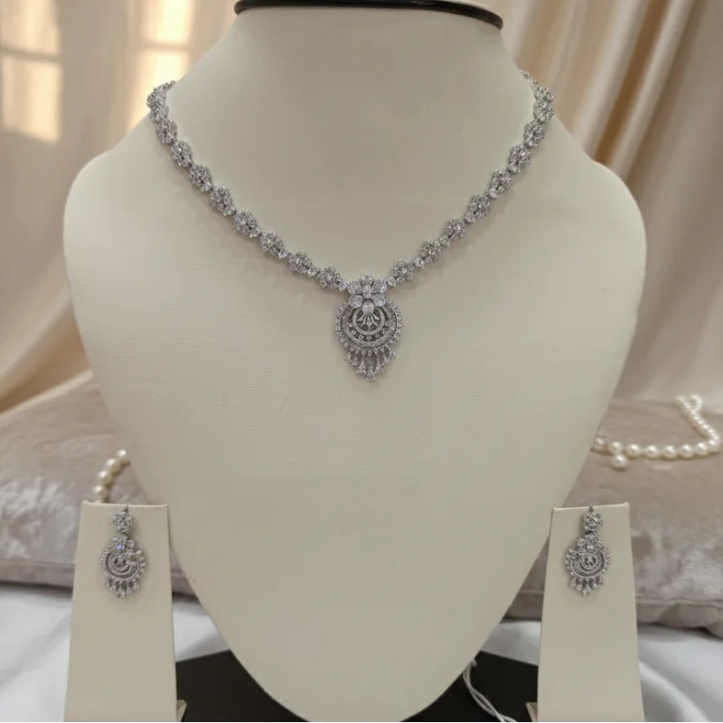 Premium Cubic Zirconia Necklace & Earring Set Silver