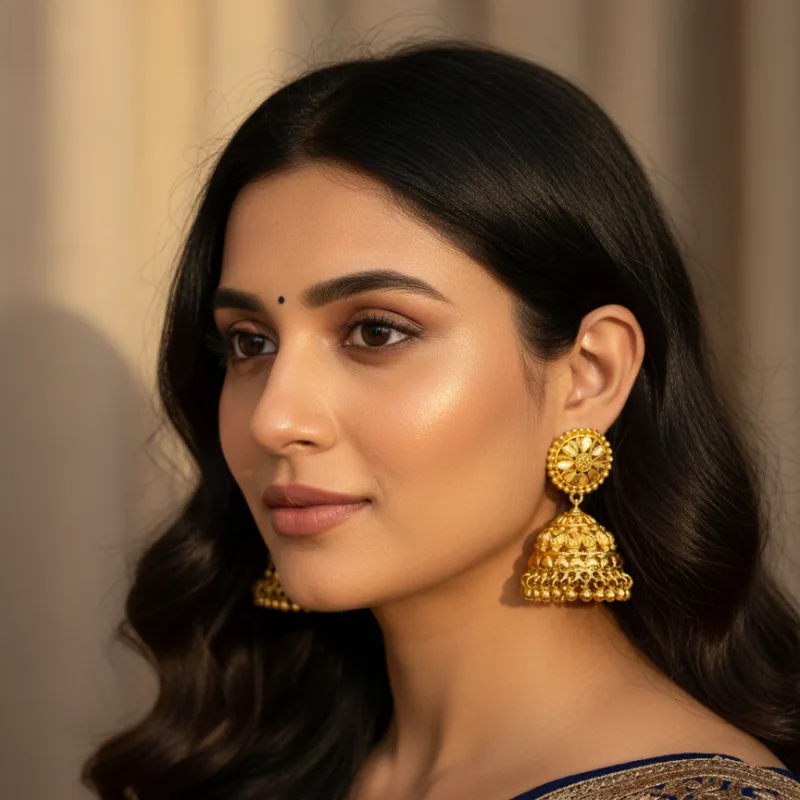 Design Inspiration: Rooted in traditional Indian jewelry artistry, this pair of jhumka earrings offers a timeless look with a luxurious finish.