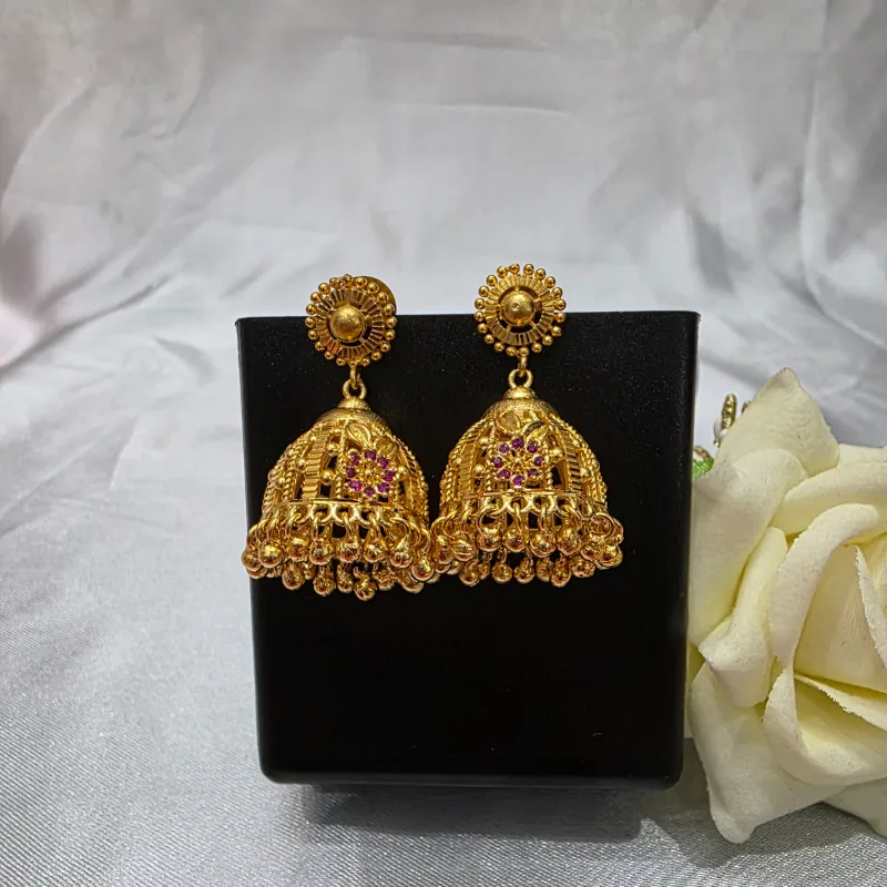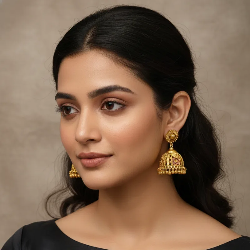 Design Inspiration: Rooted in traditional Indian jewelry artistry, this pair of jhumka earrings offers a timeless look with a luxurious finish.