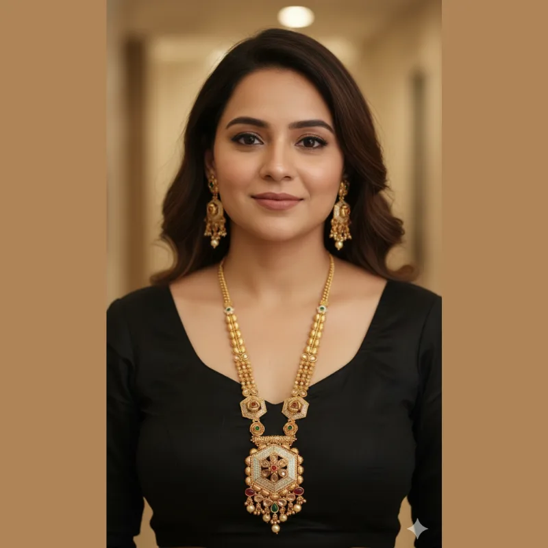 Versatile Statement Piece: Ideal for weddings, festive celebrations, and formal events, this Rani Haar style piece layers beautifully over traditional Indian attire such as sarees, lehengas, and Anarkalis.