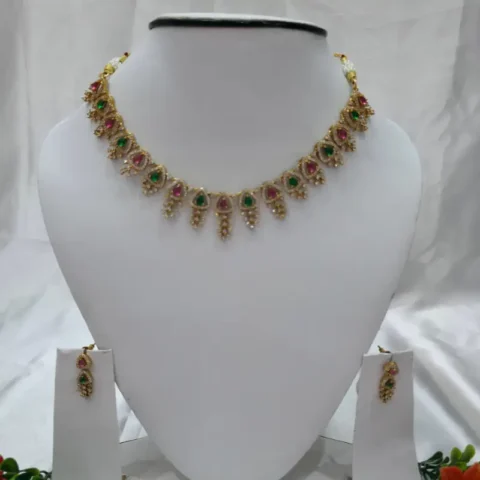 Emerald Rubellite American Diamond Necklace