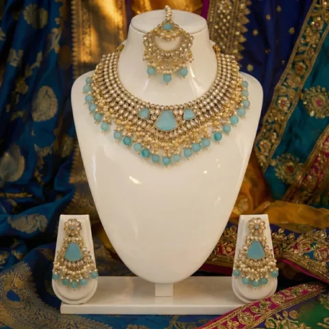 Azure Elegance Premium Semi-Bridal Jewellery Set Blue
