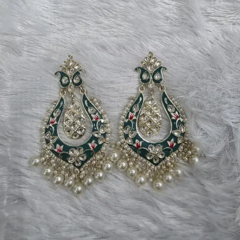 Emerald Pearl Meenakari Chandbalis