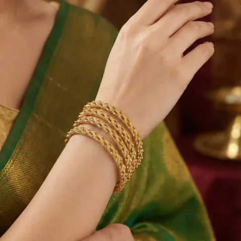 Premium Gold-Plated Twisted Bangle Set (Set of 4)